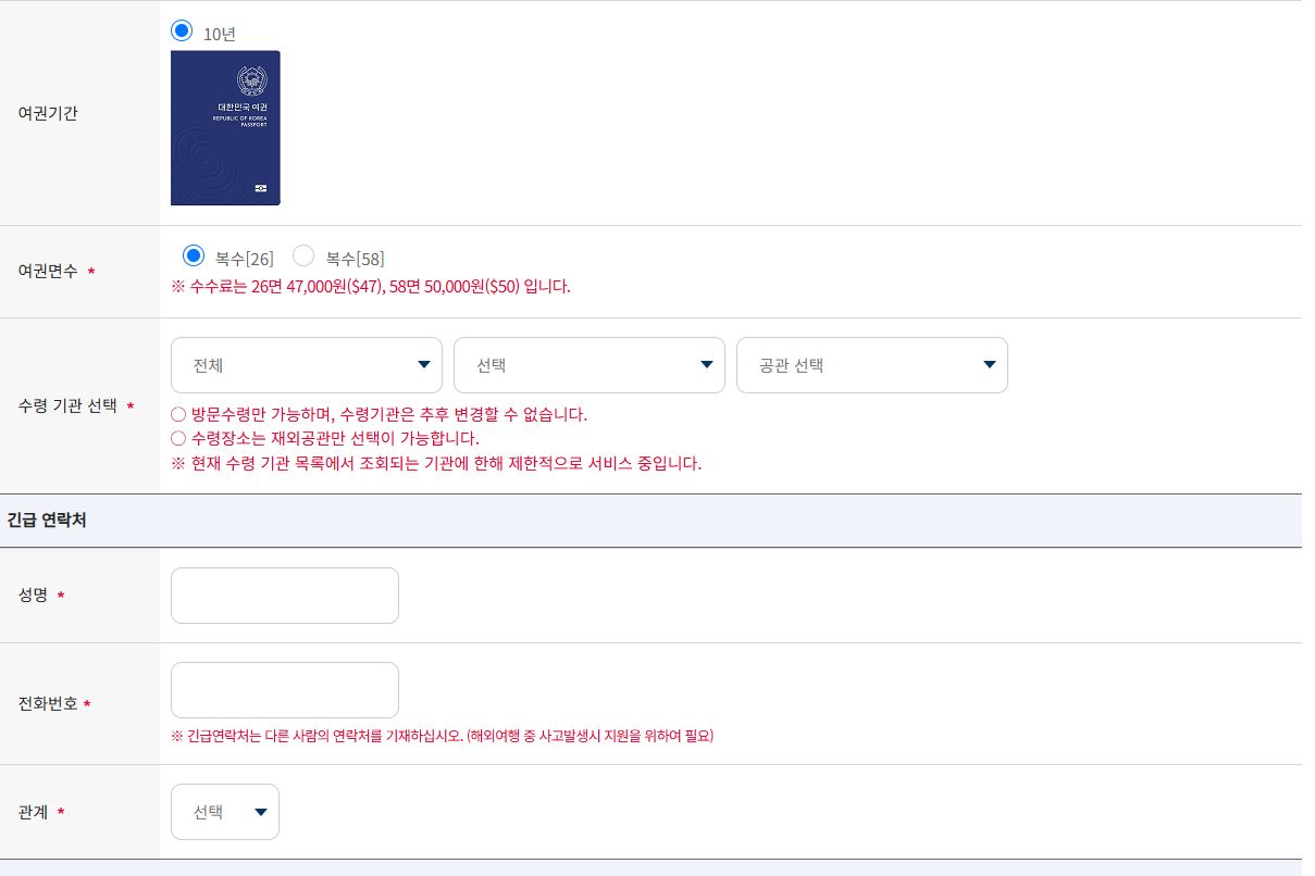 - 수령지(시청·구청·여권민원실 등) 선택