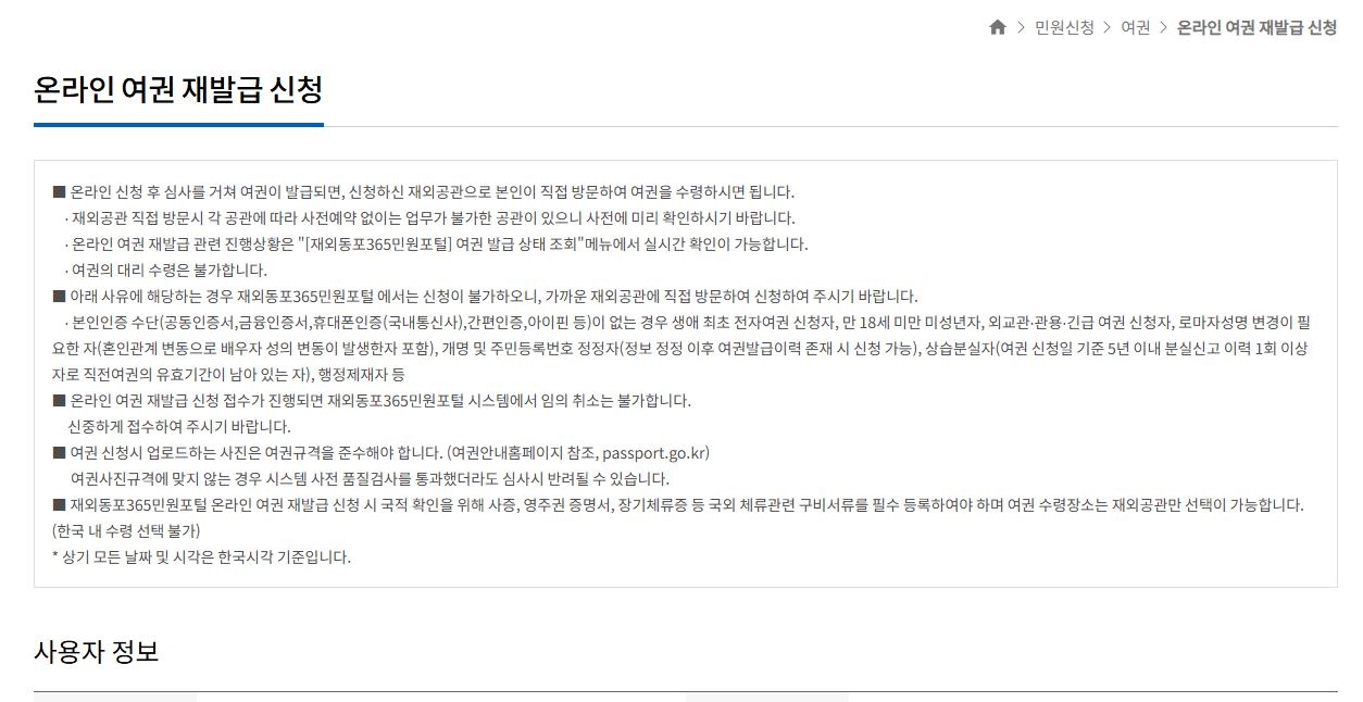 - 같은 여권번호로 다시 발급은 안 됨